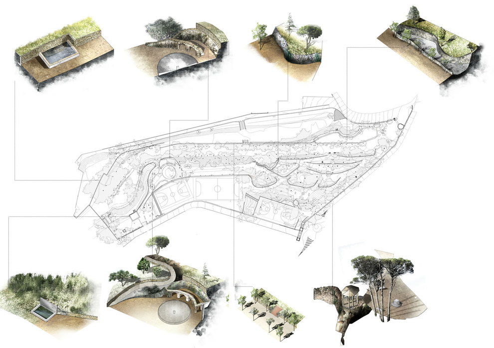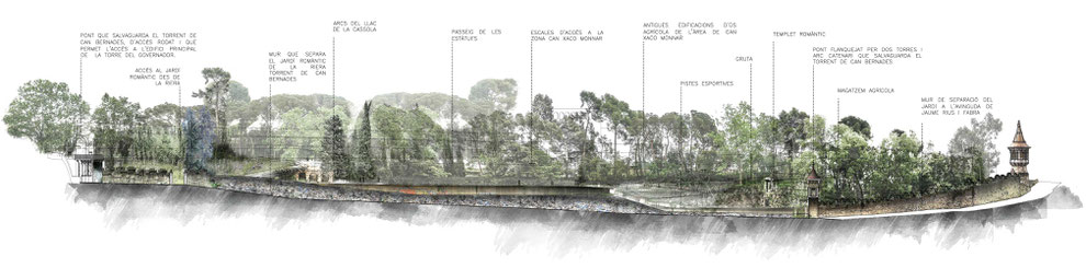 El proyecto propone consolidar, rehabilitar y restaurar cada uno de los elementos descritos anteriormente, para que el estado de degradación pueda ser detenido y que cada elemento mantenga y / o recupere su presencia y funcionalidad dentro del Jardín Romántico. A la vez que se propone también recuperar la captación de agua de riego, de manera que se puedan preservar las especies originales del jardín que han sobrevivido a los años de abandono; con recursos hídricos propios.