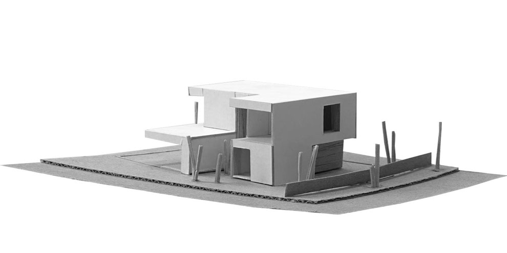 El programa de la vivienda debía integrar usos familiares y una consulta profesional, donde cada uno de ellos debía tener un acceso exterior propio, al mismo tiempo que se debía generar una conexión interior entre ambos usos y una separación de las conexiones visuales con los espacios no edificados de la parcela, de manera que las estancias del programa familiar y la zona profesional no se miraran directamente, ni compartieran visuales interiores-exteriores.